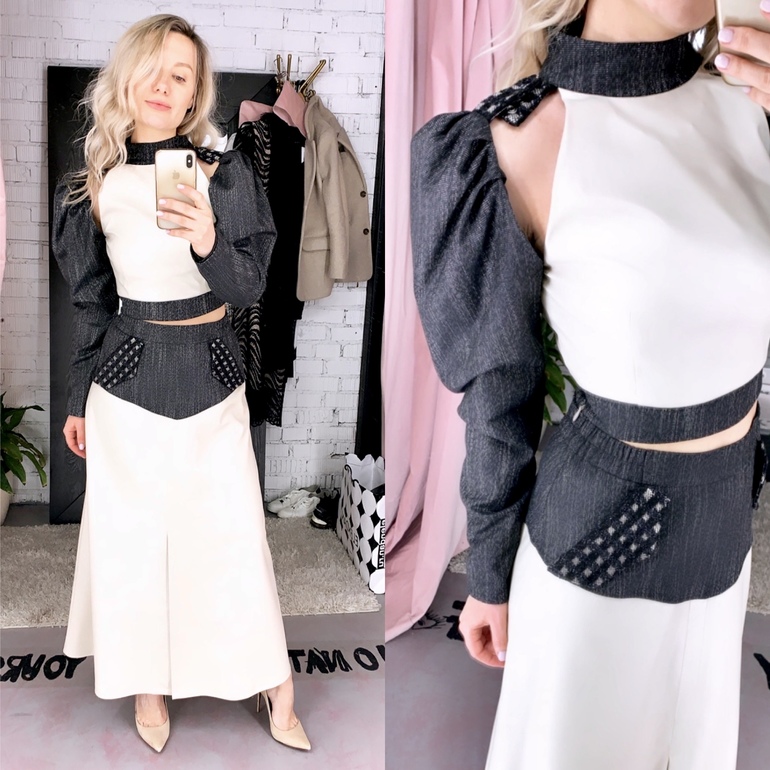 Хочу познакомить вас с дизайнерским магазином, все модели в котором выполнены молодым талантливым дизайнером Ольгой Селивановой, очень нестандартный подход к комбинации тканей, новое прочтение моделей, прекрасное качество. Если вы ищите что-то необычное для себя, тот самый «изюм» в гардероб, который выведет на новый уровень самый простой образ-вам сюда. На мне интересный костюм из экокожи и твида. Низ-просто спортивки, верх-интересный топ.