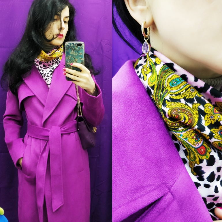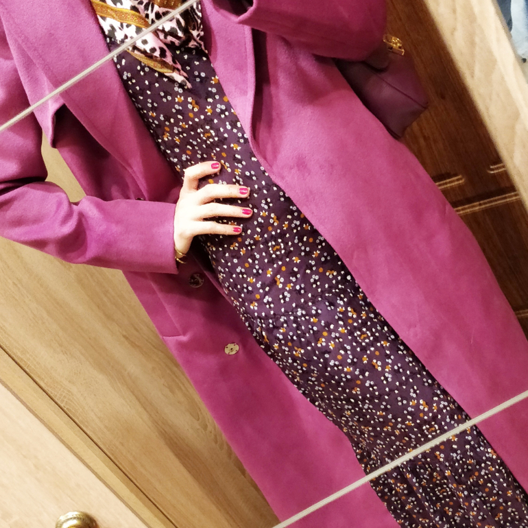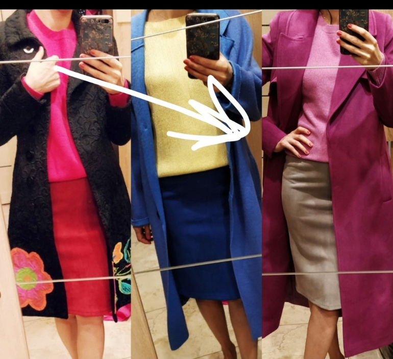 Вообще я хотела фиолетовое. Пальто у меня хватает, но вот приспичило мне именно фиолетовый цвет. Так как это покупка не была необходимостью с учётом количества моих пальто, а просто блажь с моей стороны, то главным параметром была низкая стоимость и нужный мне цвет😜