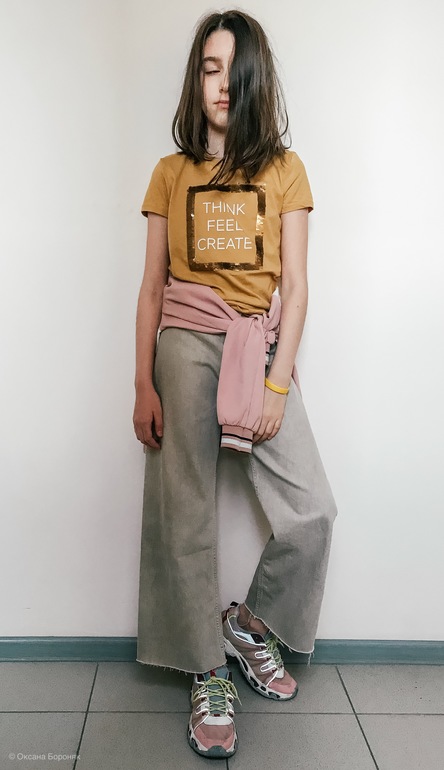 Супер! Моя тоже так хочет сейчас одеваться. Только не купить ничего)) откуда широкие брюки? Моя такие просит