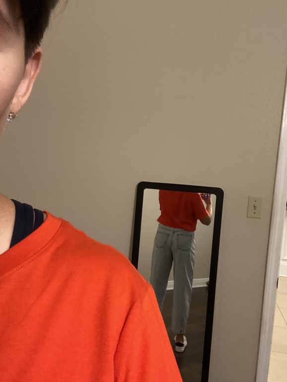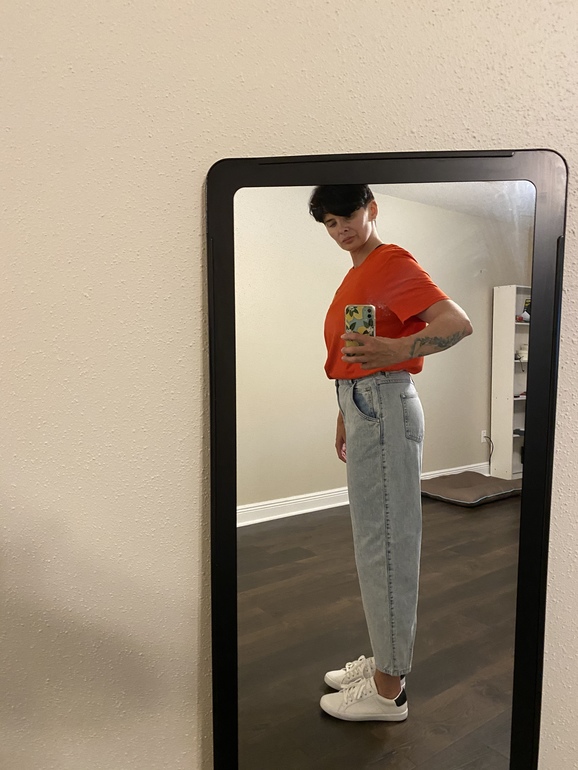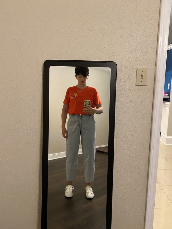 Я бы немного повернула джинсики и носила бы с футболкой на выпуск. Не ужасно.