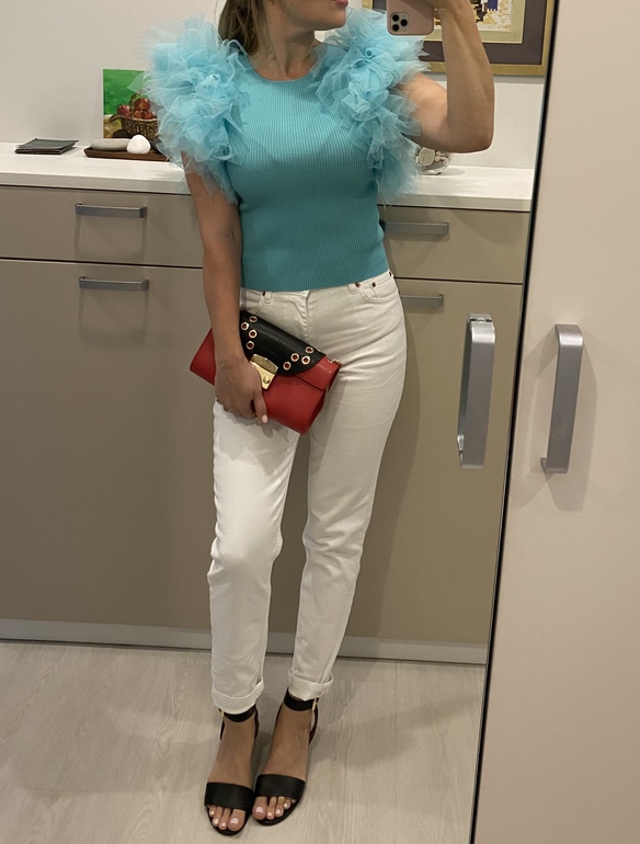 Топ Zara. Джинсы прошлогодние, «благодаря» карантину сидят плотнее, чем нужно 🤨 Но я над этим работаю 💪🏼 Про топ. Он до сих пор висит в шкафу с биркой, но все же я его, наверное, оставлю. Вряд ли буду часто носить, но вещь яркая, акцентная, мне такой не хватало в гардеробе.