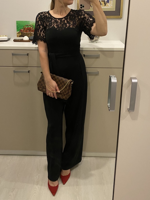 Комбинезон Guess. Куплен на ВБ на свадьбу. Да-да, чёрный на свадьбу) С женихом и невестой этой вопрос обсуждался, они не против. Ну а для меня чёрный это элегантность, вполне считаю приемлемым для такого торжества. Тем более, что погода не обещает быть жаркой и, возможно, придётся накинуть куртку, она сюда подходит
