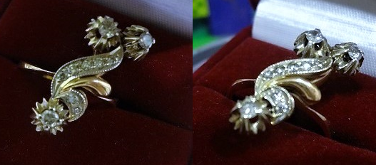 2. 8 и 9 это цвет. Те камни имеют желтоватый оттенок. Видимо поэтому они в желтом золоте, оттенок на его фоне «съедается» и камни выглядят светлее. В белом золоте смотрелись бы «грязными»