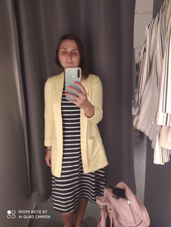 Ни один ... выглядят крайне не дорого . Не пиджак, а тряпочка🙄. Более менее бежевый .. но чуть короче бы его ну и конечно не с этим платьем (простите но платье- прощай молодость)