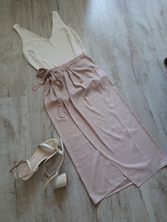 Долго вылеживался у меня отрез пудрового шелка. Начала я шить из него платье, но пока вдохновения нет его заканчивать, лежит недоделанное. Остался кусочек ткани, и за час сочинилась такая юбка.
