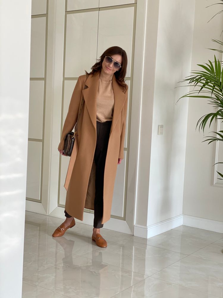 Брюки юникло,водолазка и лоферы массимо,пальто из какого-то интернет магазина,плотный трикотаж,на тёплую осень