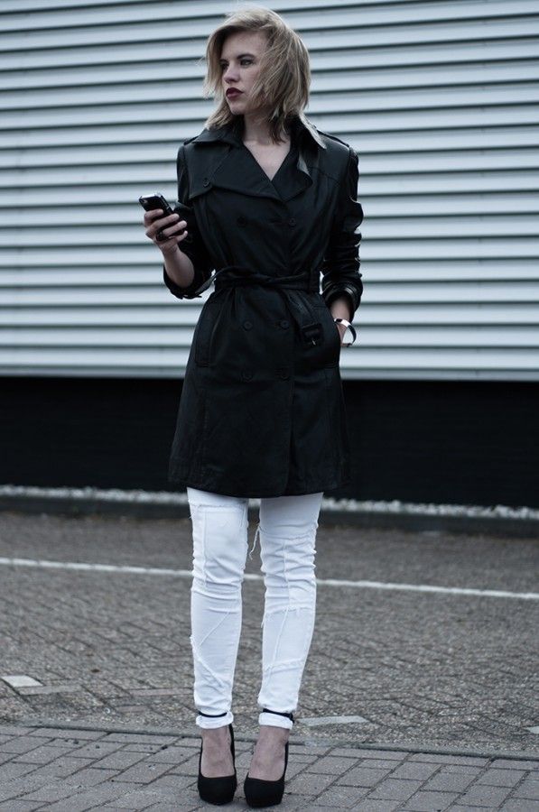 А мне кажется, белые кожаные лучше будут) ну такой расслабленный образ - джинсы типа бойфрендов, кроссовки, плащ.