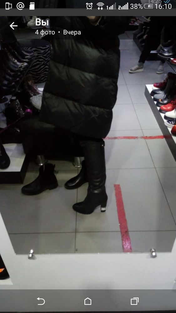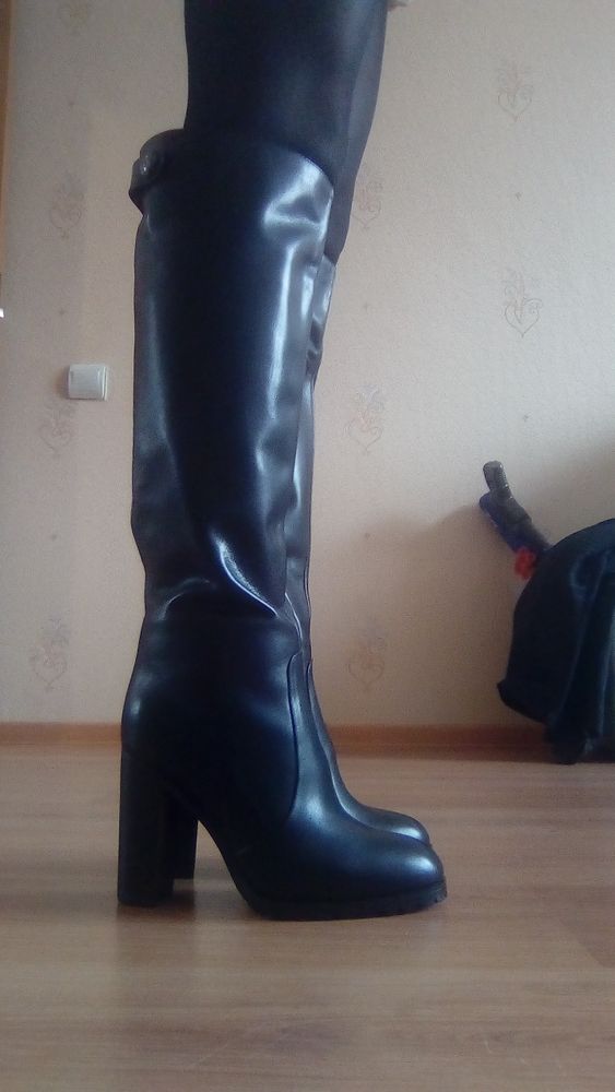 ОбувьДевочки, помогите советом! Не могу определиться! Выбираю между двумя моделями. Ищу под черный удлиненный пуховик. Вот первый вариант - Кожа черные трубы по колено. Второй - замша серые ботфорты.