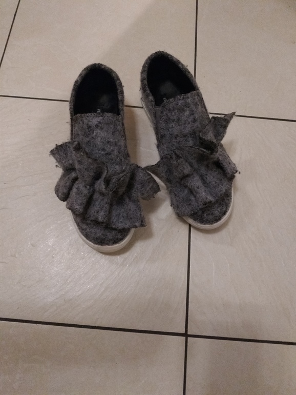 Это, кстати, школьный вариант. На ногах только серые шерстяные тапульки