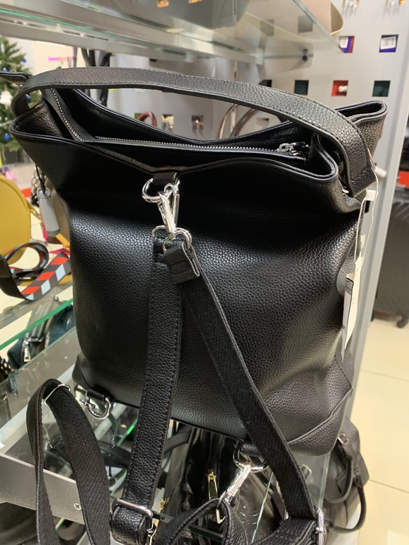 Ранее уже показывала свой, у меня рюкзак-сумка, мне удобно, но ношу сейчас не часто, в ходу маленькая через плечо. Лямки можно совсем убрать внутрь сумки и носить с короткой ручкой (тоже подходит на плечо), либо перестегнуть одну лямку как ремень.