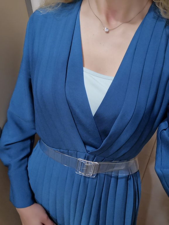 Я его с майкой одела, а то вырез до пупа. И с ремнем, иначе очень широкое.