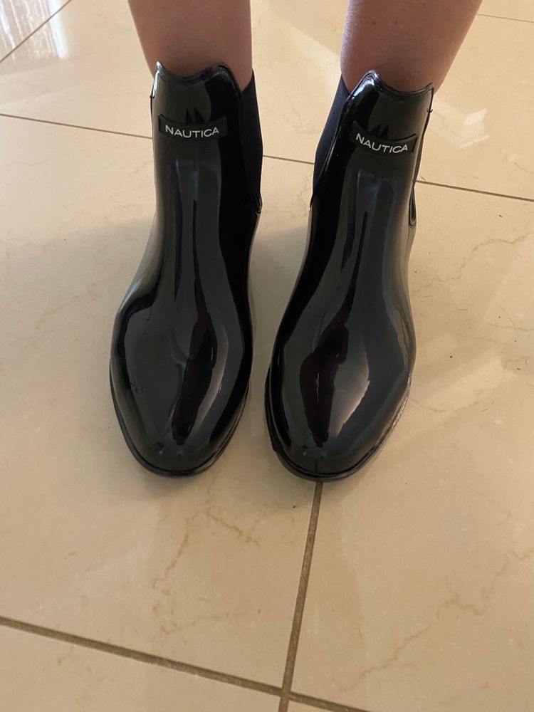 Потом были резиновые сапоги. Тут я уже сказала, что надо. Надоело ходить в мокрой грязной обуви на прогулках с собакой. И никак не могла ничего купить. В наших болотах продукт дефицитный. На полках лежат только оставшиеся дубовые резиновые сапоги, в которых ходить категорически невозможно. А тут мягкие, комфортные и ещё по ширине нормальные.