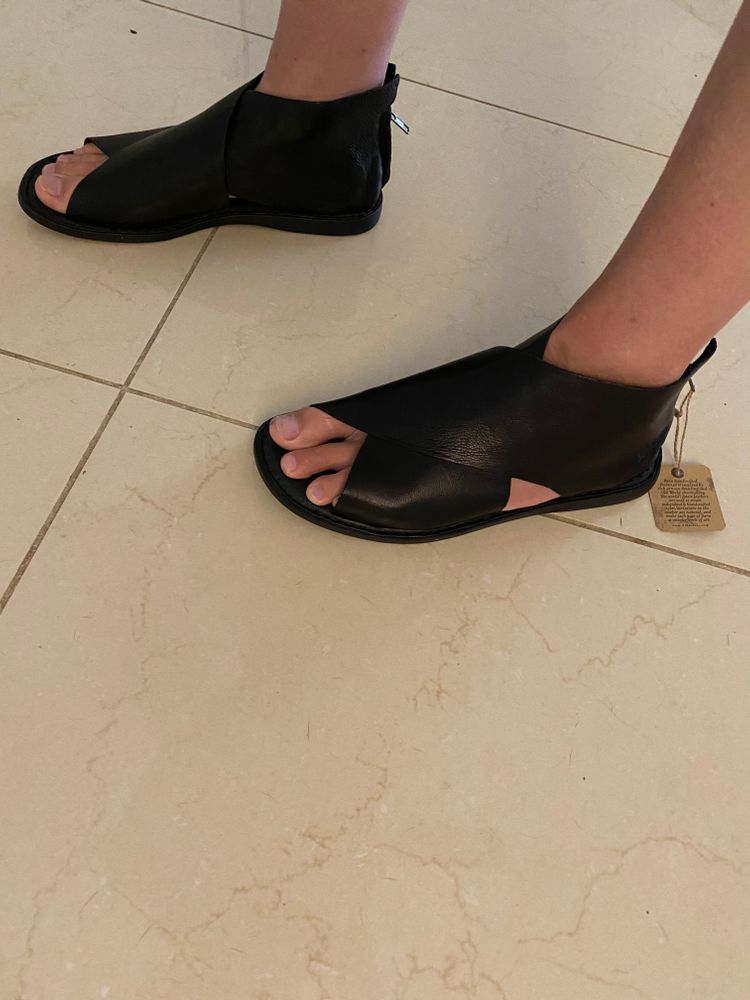 Итак, что тут в арсенале. Купили сандалии. Муж сказал «надо», мало того, что твои погрызены, так ещё и два года в погрызенных ходишь. Не знаю, насколько такие сейчас актуальны, но все это перебивает невероятное удобство и нежнейшая кожа. Я в них как влезла, так и отказалась вылезать. Еле уговорил, поскольку размера моего не было. В магазине заказали нужный и отправили на наш адрес.