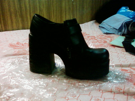 У меня есть наподобие 2 или 3 пары, только без каблука, сплошная платформа от 10 см и выше. Мне до фонаря, модно или нет, именно сейчас такие не носят, но выйдя на улицу сразу выделяешься из бесцветной серой массы одетых как из инкубатора "модниц", гордо несущих на себе позапрошлогодние европейские коллекции под видом последнего писка. Да и хорошо если европейские, а не китайщину голимую с рынка. Я, кстати, свои покупала в Англии в фирменном магазине Carnaby и TJ Collection, соответственно, качество.... потому и не выкидываю ))) кожа даже без затиров, по нашим-то дорогам! А босоножки бразильские на шпильке "модельные" через месяц летят в помойку от наших тротуаров :((
