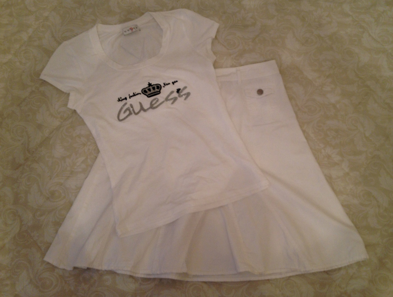 Футболка GUESS очень классная!!! Р-р S, хлопок с эластаном + замечательная, хлопковая юбочка, р-р S, за все 1300р!!!