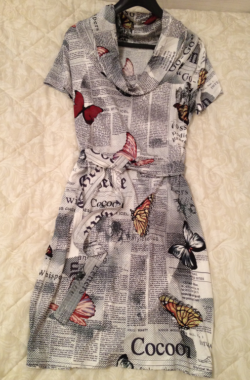 Новое платье (а-ля Гальяно), р-р единый, подойдет на 44-46-48, пояском можно регулировать длину платья, интересный воротник! Пр-во Турция - качество великолепное! Очень приятное к телу! Куплено за 3200р, отдам за 2тр, не носила, но этикетки сразу отрезала!