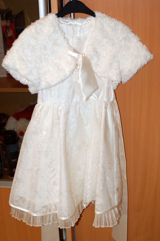 ОбъявленияДобрый день! Продам Праздничное платье (цвета слоновой кости с атласным подъюбником и поясом) + болеро (мягкое, плюшевое с атласными лентами), р. 116, обхват груди 56, обхват талии 51. Платье и болеро в отличном состоянии. Покупала в магазине "Вещь" за 2300 р., одевали всего 2 раза.