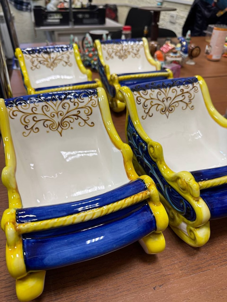Первый обжиг называется “утиль”, он происходит при температуре 800–900 градусов. Изделие становится твердым, и его можно расписывать красками.