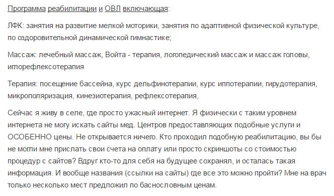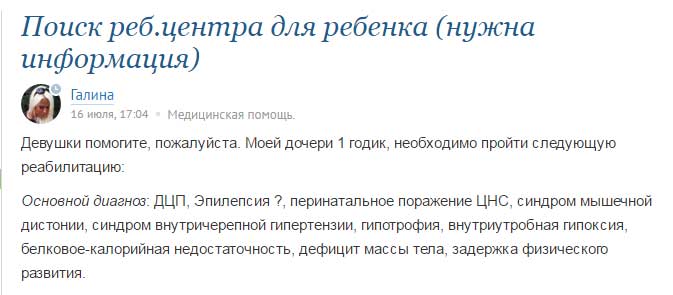 В середине июля в сообществе появился странный пост, где автор пишет, что ребенку поставили не конкретный (ДЦП делится на формы и степени тяжести, в зависимости от них определяют инвалидность и реабилитацию) диагноз и рекомендовали реабилитацию. Автор в шоке и замешательстве. Не знает как поступать, какую реабилитацию выбрать, где искать центры
