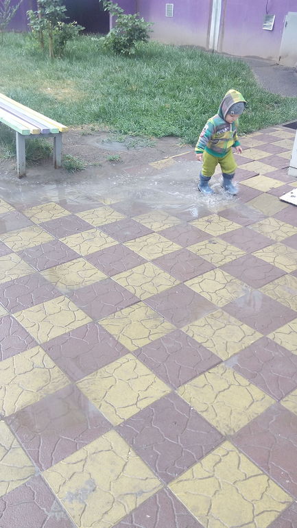 Развитие и игрыСегодня у нас дождь,а значит не время сидеть дома! Я очень люблю гулять в дождь! Но как-то все не было случая прогуляться. А тут вид моего скучающего пирожка навел меня мысль о том, что новые резиновые сапоги-то не выгулены! Данил позитивно воспринял мою идею ))). Сначала он был в недоумении: как так?! Мама не ругает, когда он шлепает по лужам! А потом втянулся так, что домой еле завела! Ещё нам пригодился полушерстяной комбез, который, как я думала, так и не пригодится.