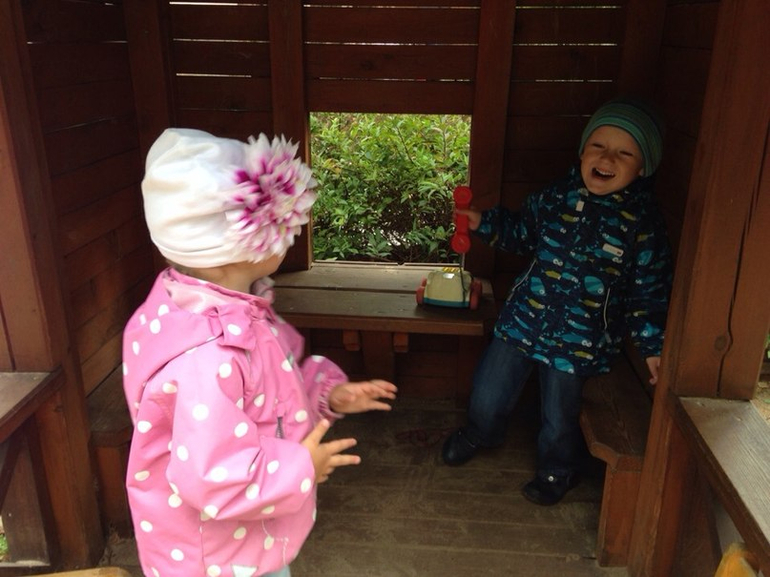 Площадки в саду все деревянные, напоминают , лично мне, постройки на старой Руси ))) Очень красиво, безумно)