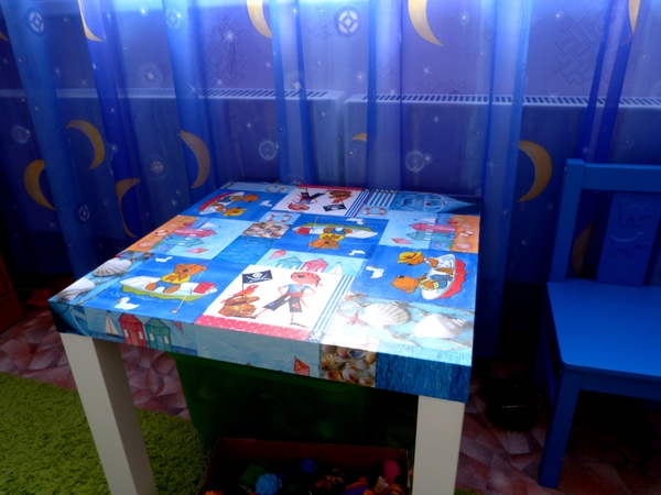 Я в декупаже не сильна!Но очень хотелось попробовать!Украсила белый икеевский стол.Вот что из этого получилось!