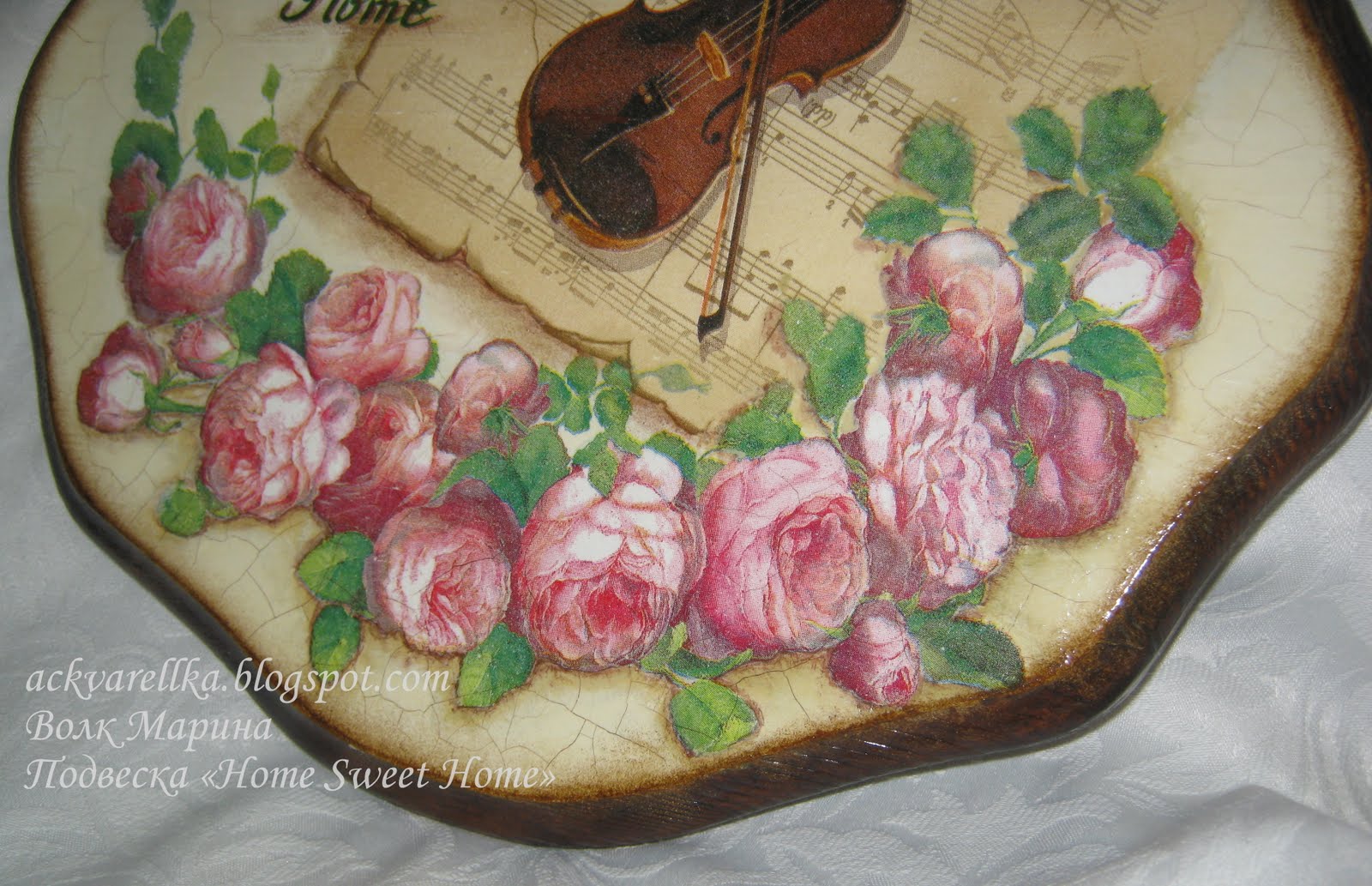 Ярлыки: , , Классика декупажа - розы, ноты, кракелюр, тени....... Сделала в подарок одной семье такую подвеску в прихожую, а теперь вопрос, для любителей шарад, какая фамилия у этой семьи?