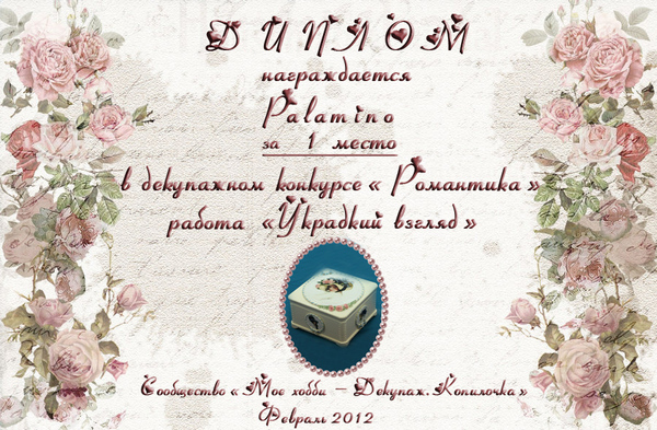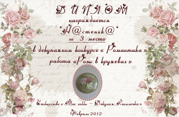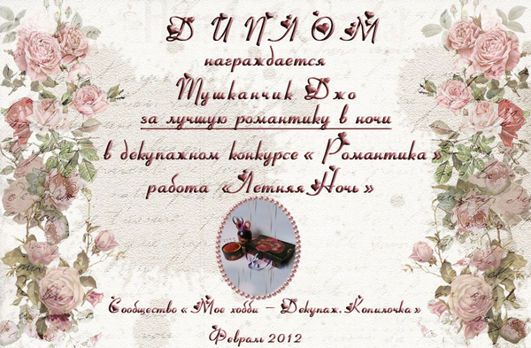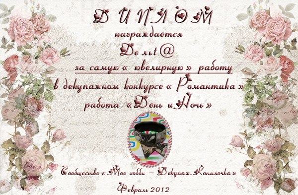 {} -Конкурсы- {}Доброе время суток, милые наши читательницы декупажницы и рукодельницы...Было очень приятно уведеть много интересных работ, которые раскрыли тему РОМАНТИКИ наши читательницы и умелые мастерицы на все руки)))