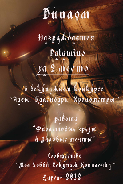 Дипломы за конкурс "Часы, Календари, Хронометры"