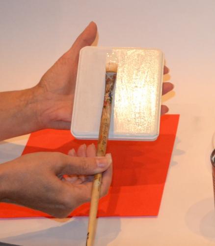 Для моей старой шкатулки этот рисунок очень ярок, поэтому я делаю лессировку жидким белым акрилом. На фото видно, что консистенция краски позволяет ей стекать с поверхности крышки