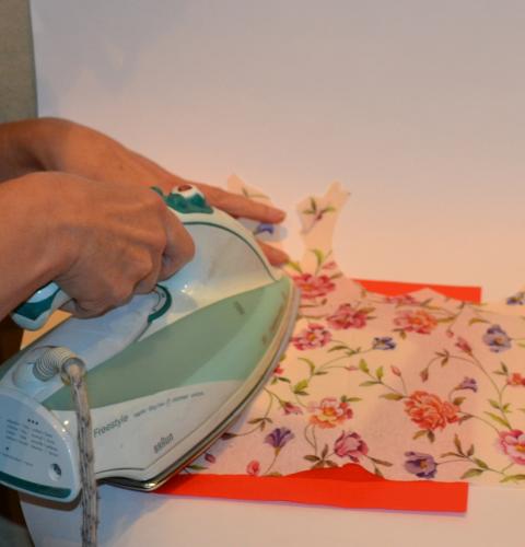 Когда клей высох, накладываю красочный слой салфетки на крышку и проглаживаю горячим утюгом.