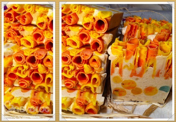 Мыло "апельсиново-шоколадный кекс" НСЖК кукурузного, пальмоядрового и кокосового масел, с добавлением какао тертого, обогащено эм апельсина и грейпфрута, ХС. Мои первые линейные свирлы:) Мыло уже опробовала, мылится очень хорошо, но мягковато. Все-таки кукурузы 80%, был у меня такой эксперемент. Далее еще фотки, прошу!