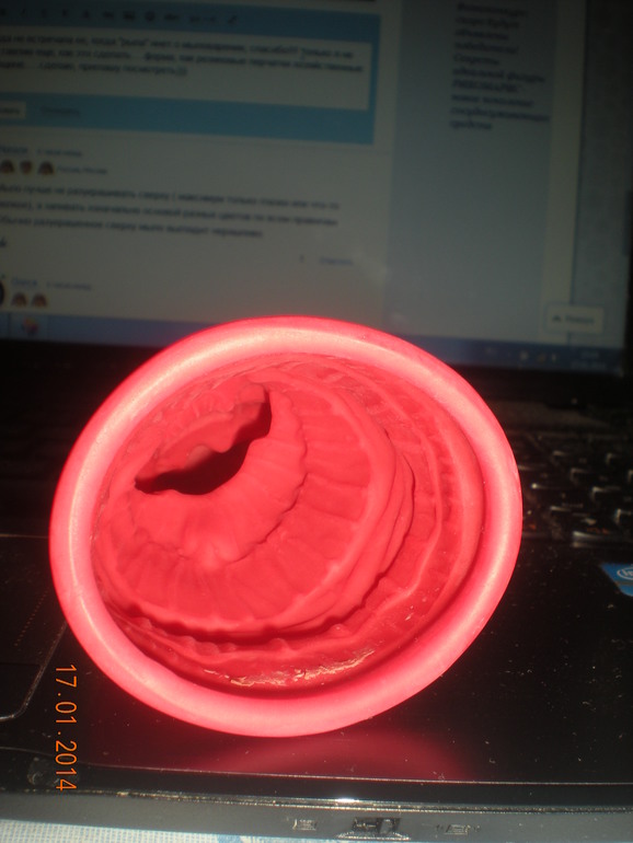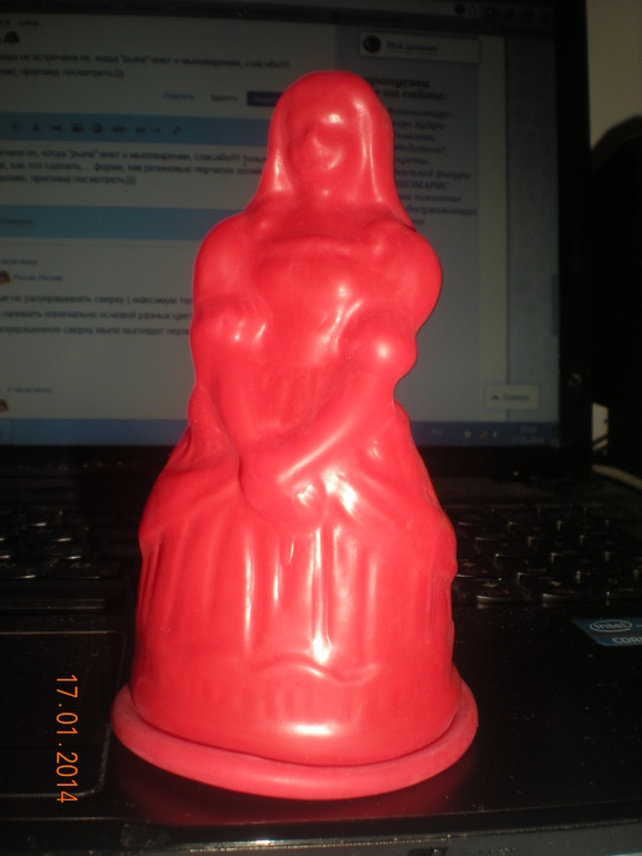 Никогда не встречала ее, когда "рыла" инет о мыловарении, спасибо!!! только я не представляю еще, как это сделать.....форма, как резиновые перчатки хозяйственные по толщине......