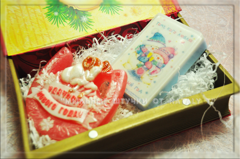 Мыло "Снеговик с гармошкой", Мыло "Книга с пожеланиями", мыло "Барашек"