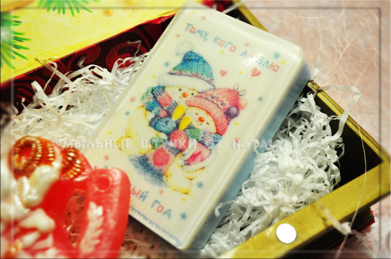 Мыло "Подкова цветная", мыло- открытка с картинкой на Новогоднюю тему.