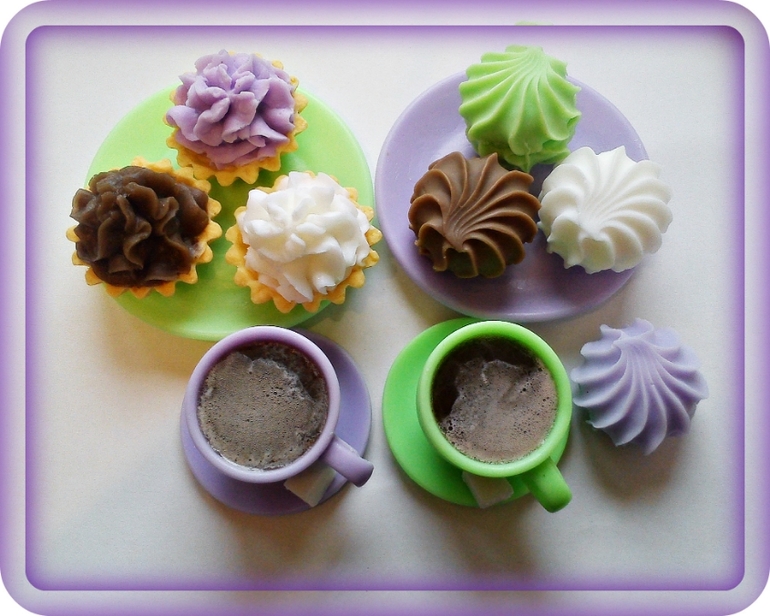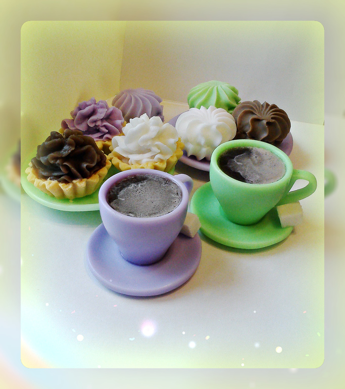 Красота какая! Все это хочется съесть, но категория — Мыло из основы, как бы предупреждает... Это ведь мыло? И чашечки тоже мыльные? Невероятно красиво и удивительно!