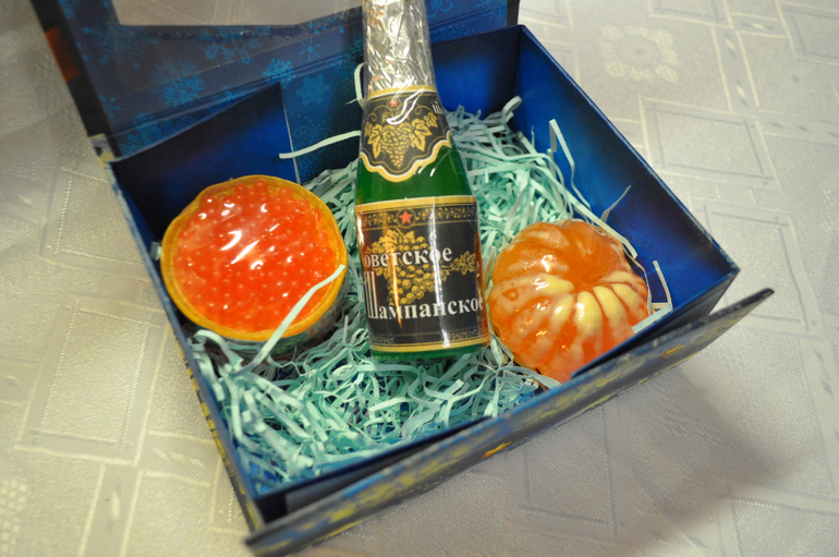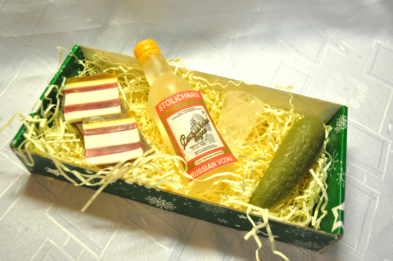 КАКАЯ КРАСОТИЩА! А ЧТО БУТЫЛКА ВОДКИ ТОЖЕ ПОЛНОСТЬЮ СДЕЛАНА ИЗ МЫЛА?СКОЛЬКО СТОИТ НАБОР ВОДКА КОЛБАСКА И ОГУРЕЦ? ПОЧТОЙ ВЫСЫЛАЕТЕ?