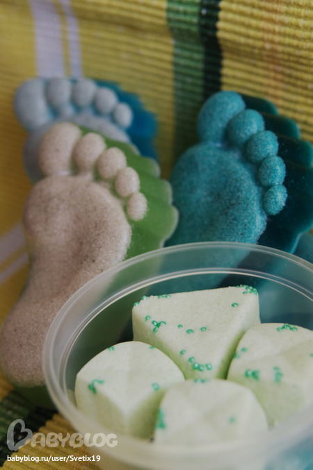 Набор "Нежные пяточки". Мыло-пемза с маслом виноградной косточки, порошком пемзы, ментолом и эфирными маслами кедра, мяты, шалфея и апельсина. Композиции везде разные по два эфирных масла. И гейзеры для ножных ванночек. В составе морская соль с чередой, сухие сливки, масло оливы, эфирное масло шалфея и мяты.