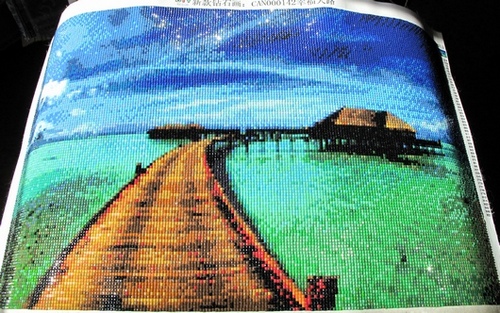 Но в процессе "тюканья" работают руки, а голова занята мыслями. И эти мысли были о том, что подарить куму на ДР? А т.к. дружим мы уже более 25 лет, то хочется не повторяться. И вот, тюкнув очередной стразик, я поняла, что эту картину мы и подарим :)