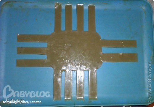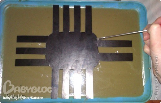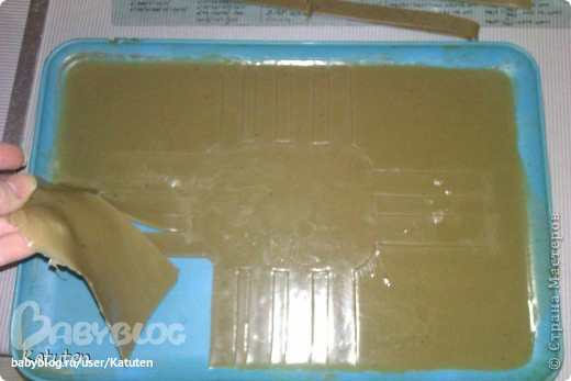 Когда наша основа достаточно застыла, накладываем на нее трафарет и аккуратно вырезаем. Придерживаем трафарет второй рукой, чтобы не съехал.