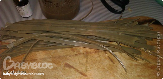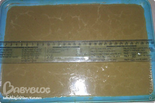В форму снова заливаем основу. Теперь будем нарезать полоски для переплетения корзины. Можно подготовить линеечку, чтобы было более ровно. Лучше чтоб она была прозрачная, так удобней нарезать