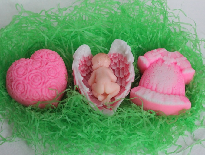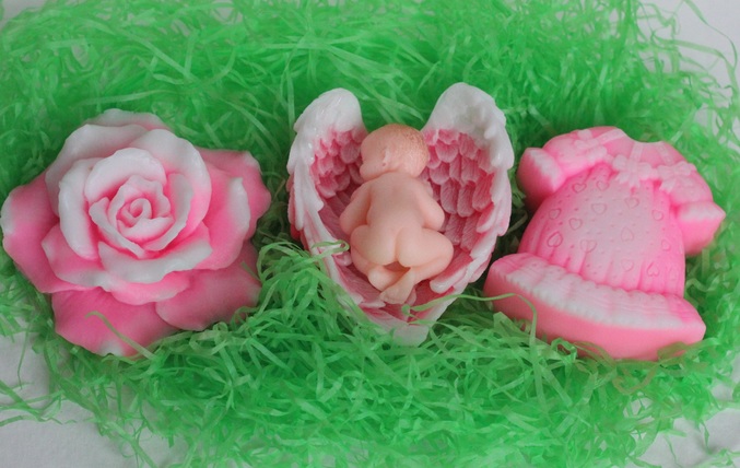 У меня много мыльц на "новорожденную" тематику, чуть позде похвастаюсь, когда сделаю... ;)) И в подарок на рождение мальчика тоже есть.