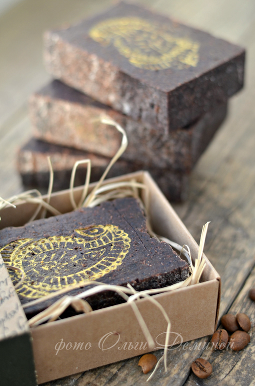 Кофеин не боится высоких температур, поэтому он в чистом виде сохранился в мыле. Кофеин стимулирует обмен веществ, сжигает подкожный жир и выводит токсины. Именно поэтому кофе и кофейные скрабы - признанные лидеры и помощники в антицеллюлитных процедурах. Подойдет для очистки тела перед косметическими процедурами.