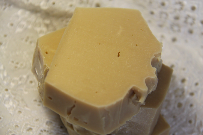 Первый опыт молочного, точнее сливочного, мыла. Цвет получился топленого молока. На фото не очень видно (((
