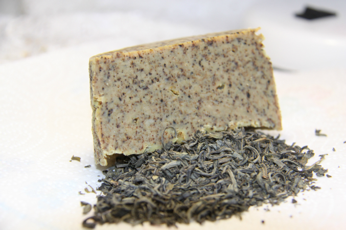 "Зеленый чай с мятой" Сварено на зеленом чае с мятой, с добавлением молотого зеленого чая и ЭМ мяты перечной. Состав 100% оливковое масло.