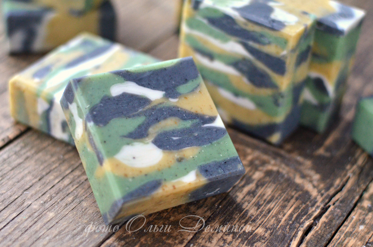 Мыло тремя глинами: черная, желтая, голубая. Оно особенное, деликатно и бережно очищает, глины придают свою неповторимую текстуру. Оно скользит и пенится совершенно иначе, не как магазинное. Подойдет для нежной мужской кожи, подростковой и юношеской, сухой и увядающей кожи.