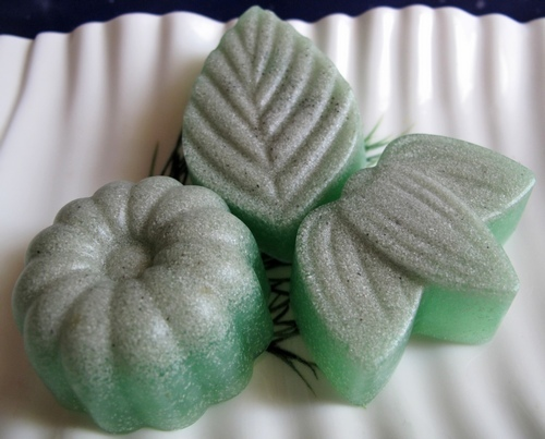 Сделала мыло-скраб с порошком пемзы с отдушкой Огурец - для пяточек хорошо (зеленые).