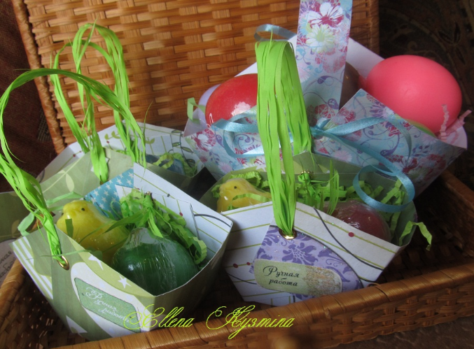 Лен, красивые корзинки)))) Тоже делала такие на прошлую пасху, но только с ручкой-полоской.