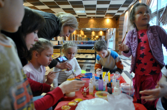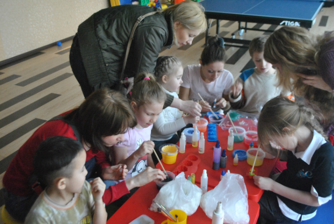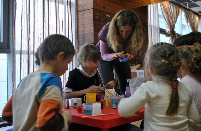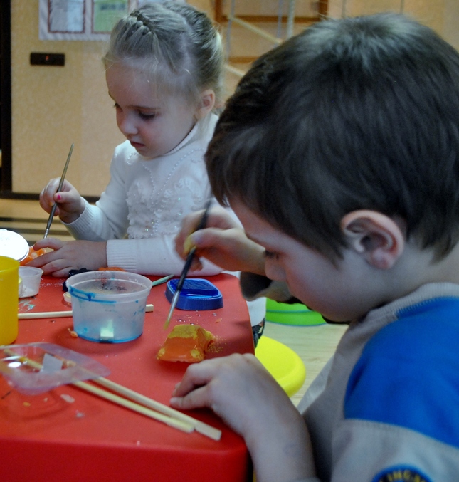 про свои ошибки: одна основная - не стоило впускать мам детей в аудиторию, тем более возраст детей был примерно равным. Получилось, что у двух детей были дополнительные "няньки", которые даже выхватывали у них из рук палочки, пытались сами залить за ребенка, на мои замечания реагировали слабо, видно, были увлечены процессом:)