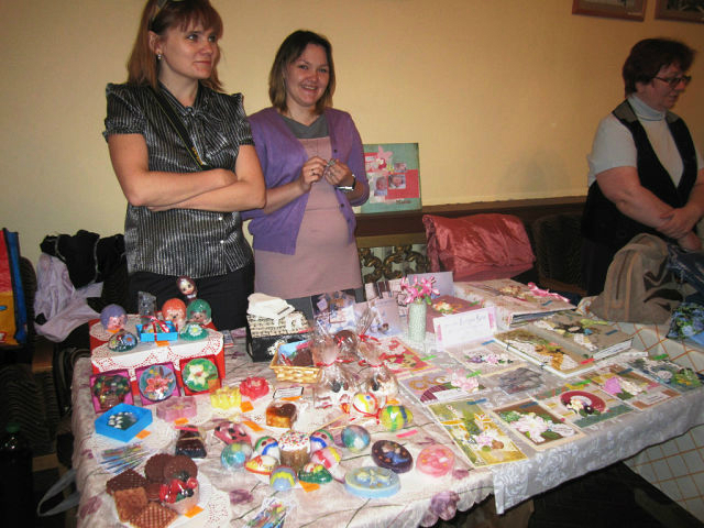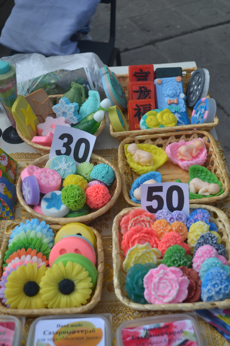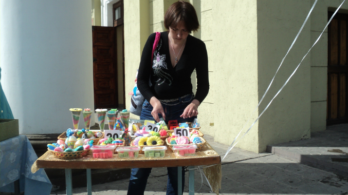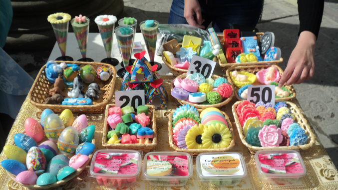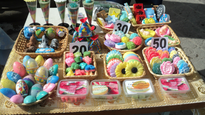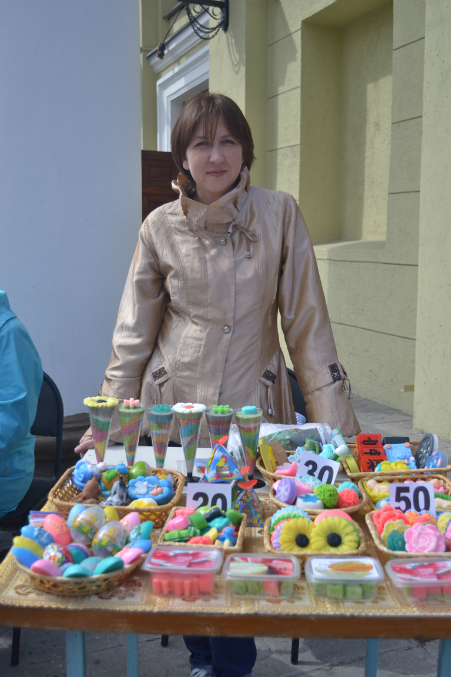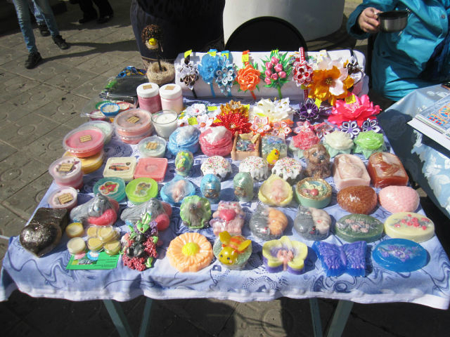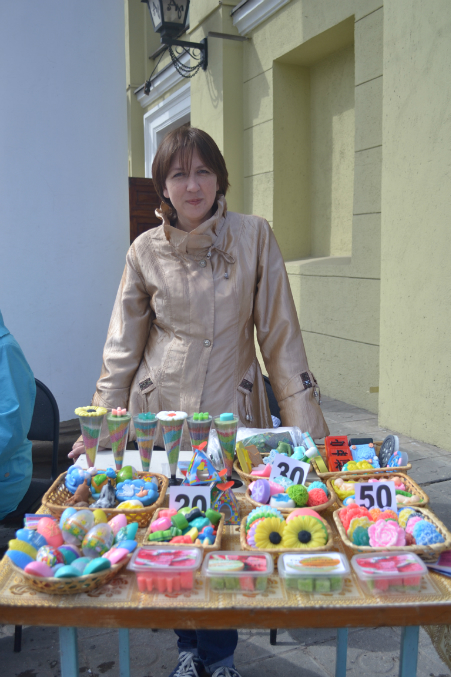 Моя выставка, ярмаркаДевочки я такая счастливая, наконец-то мне удалось поучаствовать в выставке-ярмарке фотоотчет, собирала у разных девочек с разных фотоаппаратов. С мылом нас было 4 человека, но формы, цвет, ароматы разные, так что Я всем довольна. Голопопики разлетелись как горячие пирожки, и маленькие мыльца, тоже хорошо брали, к пасхе яички, ну вобщем всего по немножку. Некоторые даже не знают что это мыло, спрашивают, а что это? Кто говорит это все из воска? вот и объясняешь каждому